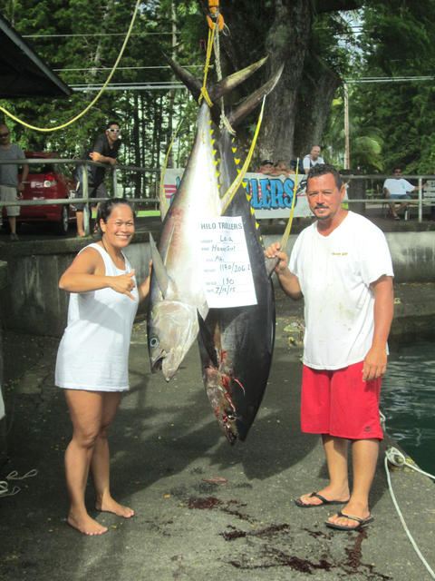 Leia DeMello lured her first big ahi, a 206.2-pounder, during the Hilo Trollers’ July tournament.
