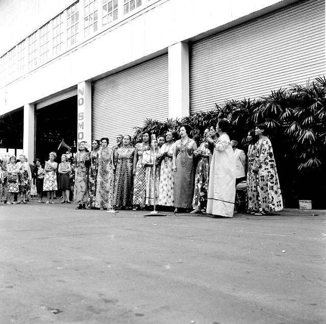 This photo from the Lyman Museum’s John Howard Pierce Photography Collection, No. 15843, was first published in the Sept. 12, 2015, edition of the Tribune-Herald. The following people have been identified in this photo thanks to the efforts of the community: The performers are, from left, Sylvia Leong Belcher, Diana Paulo, Alberta “Lali” Kaupiko Nathaniel, Thomas Kahiki, Lei Malani, Abbie Paulo, Edina Farias, Arnold Nathaniel, Wilhelmina Leong, Kua‘ana Nathaniel Kekua, Juliet Nathaniel Lindsey, Lei Marino, Maria Hendershot, Dan Nathaniel Sr., Etta Lindsey Rosehill and Lyndelle Lindsey. This photo was taken Jan. 15, 1967, at the pier to welcome the ship Lurlene. If you think a subject or location has been misidentified, a name misspelled or you have any further information about this photo, call the museum at 935-5021.