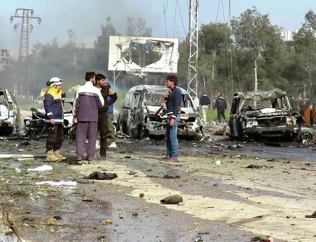 State TV al-Ikhbariya said the attack was the result of a car bomb carrying food aid to be delivered to the evacuees in the rebel-held area — ostensibly crisps for the children — and accused rebel groups of carrying it out.