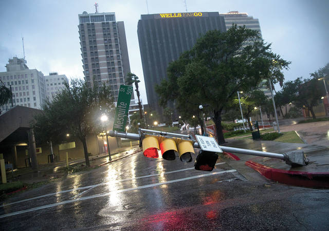 The National Hurricane Center said the eye of the Category 4 hurricane made landfall about 10 p.m. about 30 miles (48 kilometers) northeast of Corpus Christi, bringing with it 130 mph (209 kph) sustained winds and flooding rains.