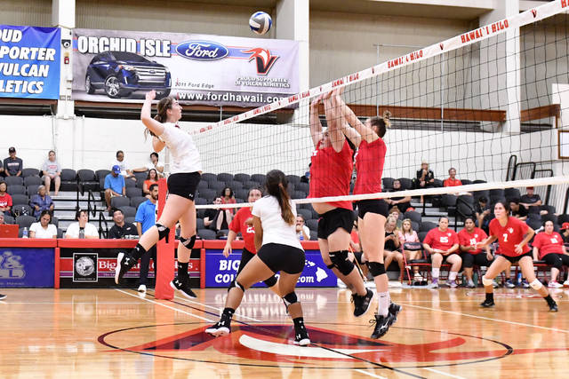 The Vulcans didn’t have a standout hitter Wednesday beyond junior middle blocker Ashton Jessee, who posted six kills on .333 hitting, adding four blocks. Junior middle Katrina Johnson added four kills on 10 attempts, but UH-Hilo’s prime options at outside hitter didn’t provide similar production. Siera Green had four kills, but hit .000, while Lucee Fitzgerald had one kill on 13 attempts.