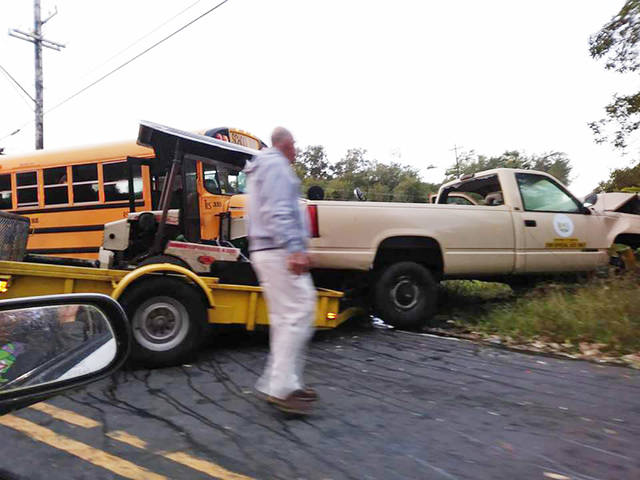 Courtesy photo A school bus and state vehicle are shown after a crash Wednesday in Mountain View.