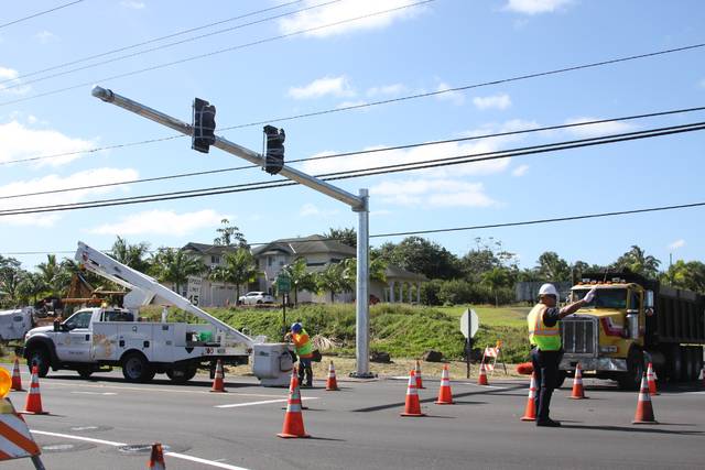 The traffic signals are in place, but it may take until the end of the month before intersection improvements at Shower Drive and Highway 130 in Puna are complete.
