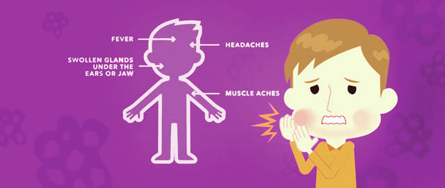 According to the state, mumps symptoms can include fever, headache, muscle aches, tiredness, loss of appetite and swollen, tender salivary glands under the ears or along the jawline on one or both sides.