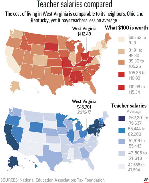 Teachers walked off the job Feb. 22, balking at an initial bill signed by Gov. Jim Justice to bump up their pay 2 percent in the first year as they also complained about rising health insurance costs.