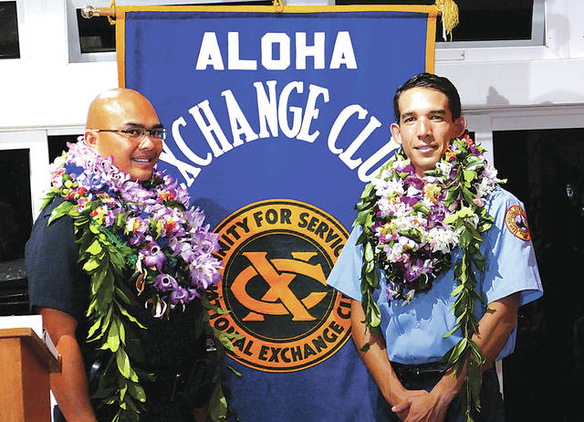 The Aloha Exchange Club of East Hawaii presented its annual Police Officer and Firefighter of the Year Awards during a ceremony March 19 at Hilo Yacht Club.
