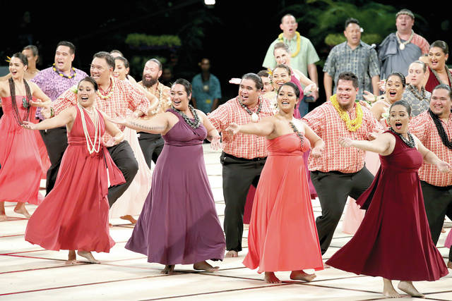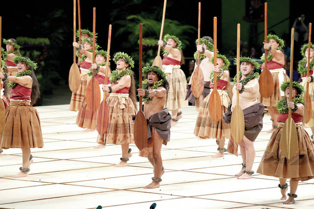 The Merrie Monarch Festival’s Wednesday night Ho‘ike featured a tribute to the original crew of the Polynesian Voyaging Society double-hulled canoe Hokule‘a, which returned to Hilo earlier this week for the first time since leaving on a world tour in 2014.