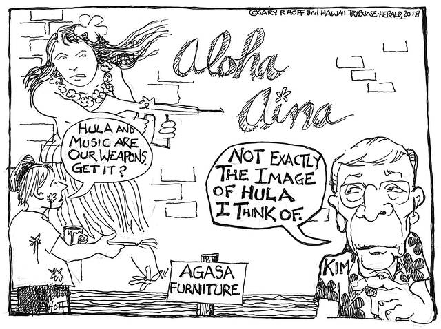 The Big Island as seen by Hawaii Tribune-Herald cartoonist Gary Hoff.