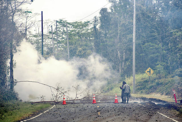 A Tribune-Herald photographer said there were cracks on Pohoiki Road but she didn’t see any lava on that street or Hinalo Street.