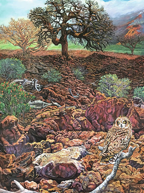 Courtesy photo “Pueo Visits Wiliwili in The Land of ‘Ilima” by Carol Tredway, Hawai‘i Nei 2017 featured category, professional division.