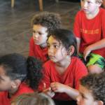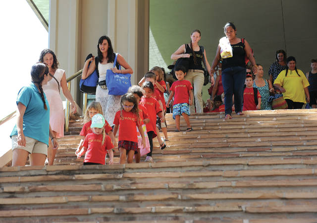 The day’s fun began from the moment the kids, parents and teachers stepped off the yellow school bus. After sharing a special chant, “Na Aumakua,” to bless the day, the youngsters took off on a trek through the grandiose hotel to the Dolphin Quest lagoon.