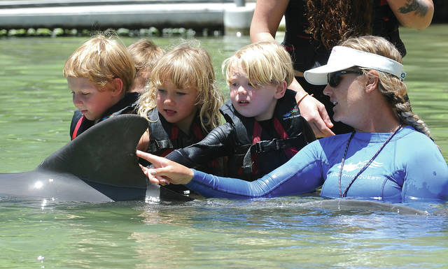 “This is going to be a lifetime memory, seeing the dolphins,” said Melissa Ekstrom as her son Lalibela Ekstrom, 5, touched one of the dolphins. “This is great, and to be able to get him up-close is really special.”