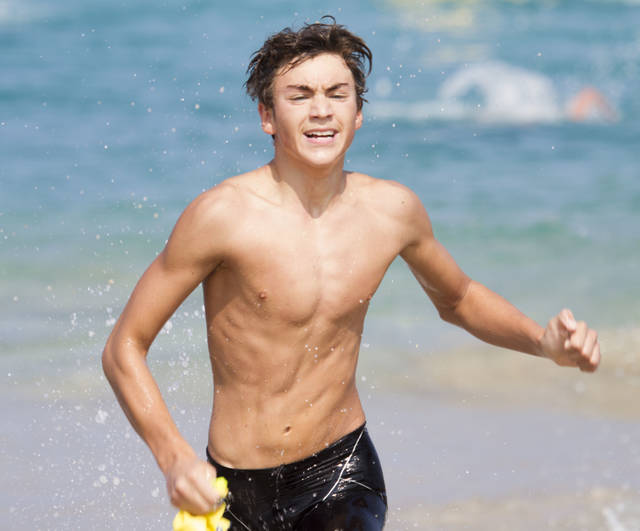 Aiden Ankrum took top overall honors at the Hapuna Rough Water Swim on Saturday. (J.R. De Groote/West Hawaii Today)