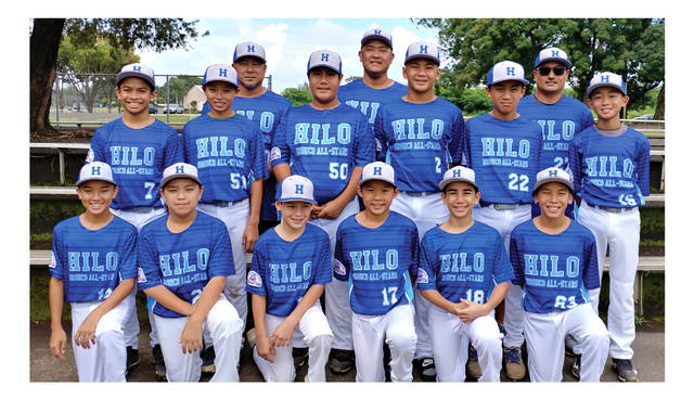 The Hilo Bronco All-Stars won Saturday at the state PONY Baseball tournament for ages 11-12 on on Oahu. On the team are, from, left to right, bottom row: Dillon Mizuno-Fukui, Kainoa Calles, Jaziah O’ili, Zayne Fujioka, Luke Klask, Chayden Bertelmann; middle: Haiden Kay, Edinn Kitagawa, Micah Lopes, Daycen Aurelio, Loren Iwata, Connor Gonzalez; top: coaches Lee Iwata, Brandon Gonzalez and Mark Kitagawa.