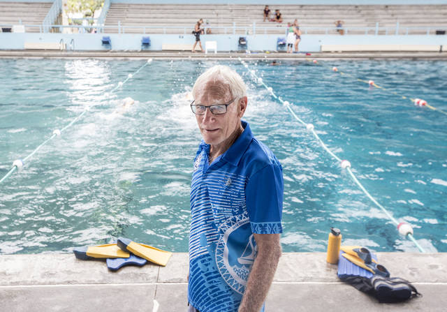 HOLLYN JOHNSON/Tribune-Herald The United Nations officially recognizes Hilo’s Bill Sakovich as the “Father of Swimming in the Pacific.” Sakovich is a member of the Northern Marianas Sports Hall of Fame, and the veteran coach is set to be inducted into the Hawaii Swimming Hall of Fame.