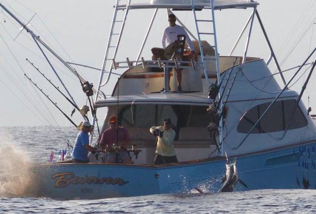 Three boats that we know of have caught five marlin in one day. Multiple catches are common, as are mixed bags, and “Kona Slams” — all flag fish in one day — have been reported a number of times.