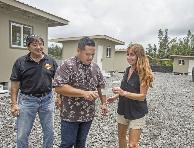 As work continued Wednesday on additional transitional housing in Hawaiian Paradise Park, Connect Point Church received a $10,000 donation for the project.