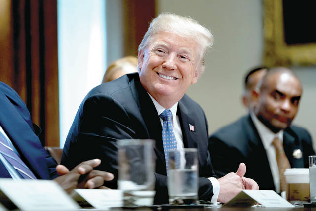 President Donald Trump smiles during a meeting with inner city pastors in the Cabinet Room of the White House in Washington, Wednesday, Aug. 1, 2018. (AP Photo/Andrew Harnik)