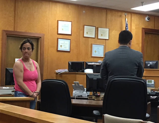 TIFFANY DEMASTERS/West Hawaii Today Kehaulani Rubio, 42, left, of Kailua-Kona, appeared in District Court for an initial appearance on Tuesday on charges of first-degree custodial interference. Rubio is accused of attempting to take a child out of a Kealakehe Elementary School classroom.