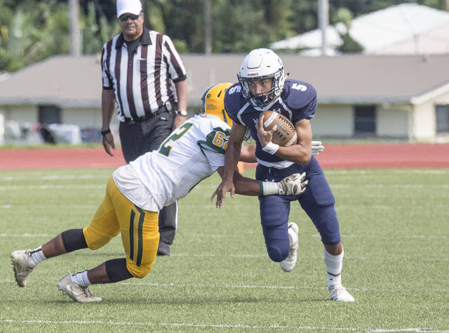 Ka’u again looked the part of eight-man favorite in a 20-6 victory against Pahoa on Sept. 6. The only thing that fully slowed Izaiah Pilanca-Emmsley (150 yards rushing, one touchdown), Shesley Martinez (two TDs) and crew was a power outage that cut the game short.