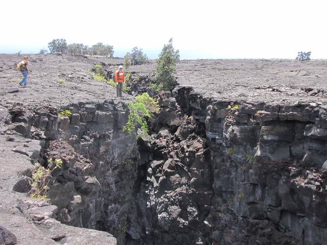 The eponymous crack is a ravine in a lava field on the makai side of Highway 11 northeast of Pahala. In some places, the crack measures up to 60 feet wide and 60 feet deep.