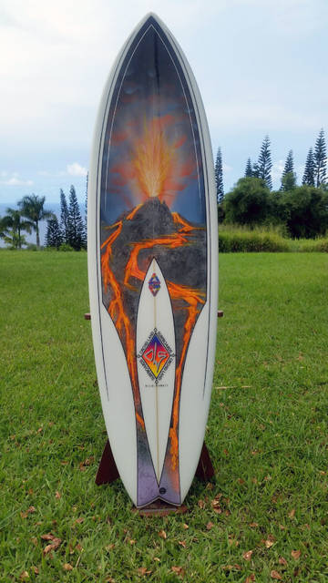 “In talking with my wife (Monique Chevallier-Edwards), it just sort of came up, the vibe that day, that week, was about the volcano, the lava, and its impact,” he said. “We realized most of my friends, many of my clients (Surfboards by Dean Edwards), live down in the lower Puna — Pahoa area, damn near all my friends were affected in some way or another.”