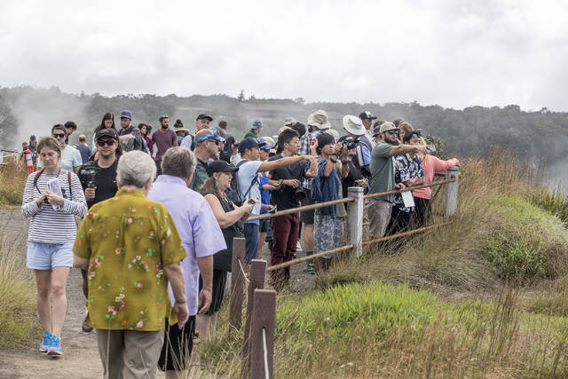 HOLLYN JOHNSON/Tribune-Herald file photo Visitors to Hawaii Volcanoes National Park upon its reopening Sept. 22 see how Halema‘uma‘u crater has expanded since the beginning of the Kilauea volcano’s lower East Rift Zone in May.