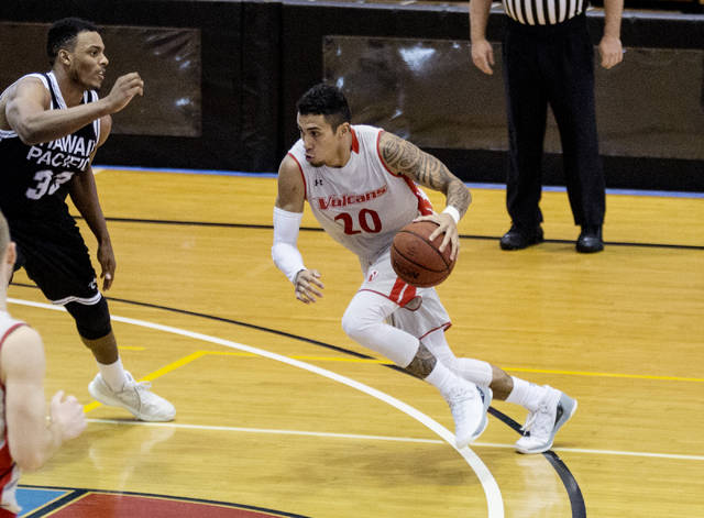 HOLLYN JOHNSON/Tribune-Herald UH-Hilo alum Randan Berinobis scored 12 points with 8 rebounds Saturday for the Hawaii Swish of the American Basketball League.
