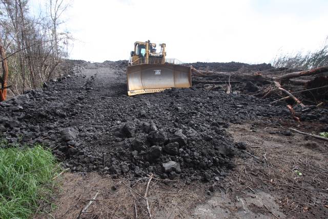 The road was constructed as an emergency access route for residents with property around Pohoiki Road that was isolated by the lava flows earlier this year, although it also will allow access to Isaac Hale Beach Park, which is located within the isolated zone.