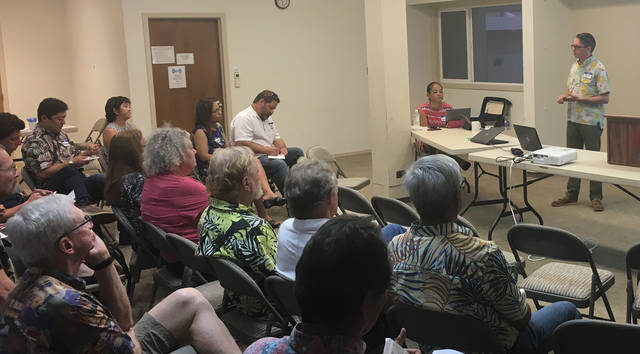 About 20 people attended the meeting in the Waikoloa Village Association Community Room, inquiring about aspects of the potential new solar venture including storm water runoff, wildfire precautions and a decommissioning process that’s decades down the road.