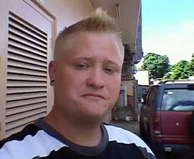 Ryan Baker is described as 5 feet 5 inches tall, 200 pounds, with short blond hair. He has a scar between his eyebrows and “Puna” tattooed on his left-hand knuckles.