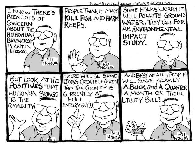 The Big Island as seen by Hawaii Tribune-Herald cartoonist Gary Hoff.