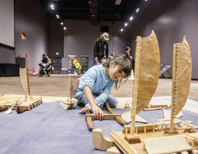 HOLLYN JOHNSON/Tribune-Herald Alis Medina, 6, learns how to build a model canoe Sunday during the 11th annual Wayfinding Festival at 'Imiloa Astronomy Center in Hilo.
