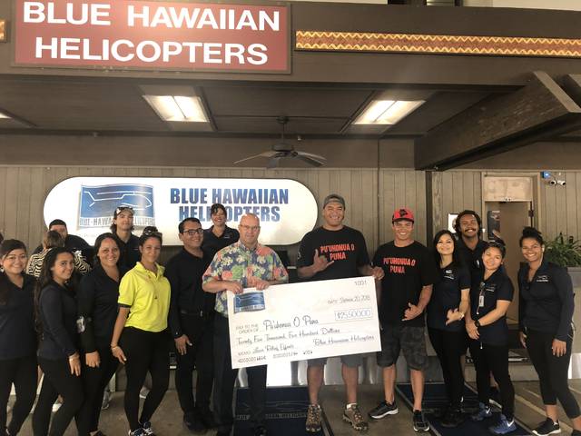 “We are so grateful to our friends at Blue Hawaiian Helicopters for their continued support,” said Ikaika Marzo of Pu’uhonua o Puna. “Their donation will definitely go a long way in helping improve the lives of Hawaii Island residents adversely affected by the volcanic activity.”