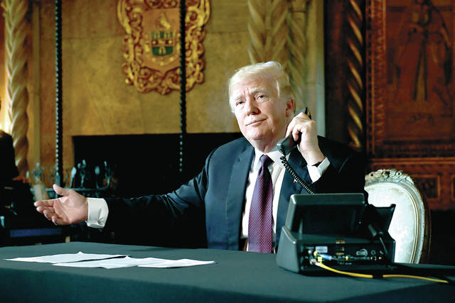 PALM BEACH, Fla. — President Donald Trump used a Thanksgiving Day call to troops deployed overseas to pat himself on the back and air grievances about the courts, trade and migrants heading to the U.S.-Mexico border.
