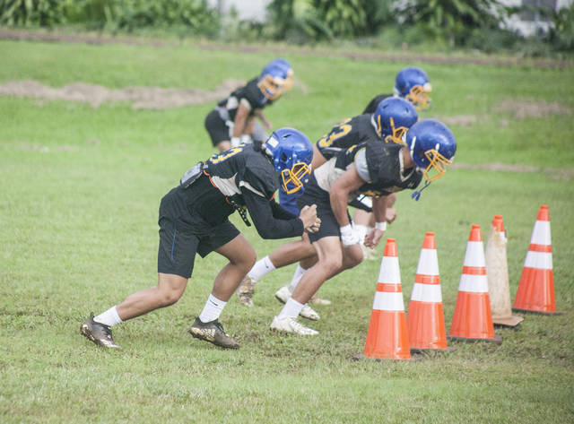 The state final will be Hilo’s first game of the season on artificial turf, so to get acclimated to a similar playing surface to that of Aloha Stadium, the Vikings twice got permission to practice at Waiakea’s Ken Yamase Memorial Stadium.