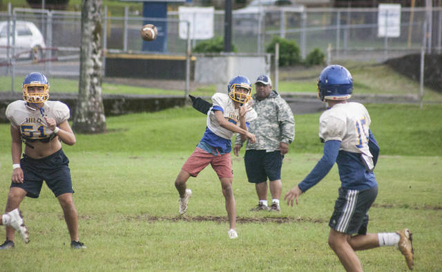 In a strength vs. strength matchup, Hilo’s passing game – receivers Ogata, Kalae Akui and Fiki Aguiar have become an almost interchangeable three-headed monster of sorts – will try try beat Waipahu’s aggressive safety play.