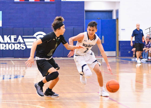 RICK OGATA photo Waiakea's Kiai Apele, right, thinks the Warriors have a higher basketball IQ this season.