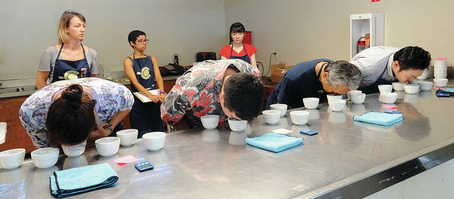 At the helm of this year’s Kona Coffee Cupping Competition were Brian Webb and Brit Horn of Pacific Coffee Research, a certified Specialty Coffee Association training campus in South Kona.