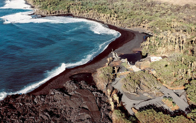 The park sports a new black sand beach which was created by the eruption. The new beach has a dangerous shore break with ocean currents that could cause injury, and those entering the ocean do so at their own risk, officials said.
