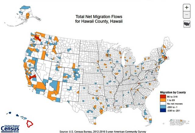 In fact, between 2012 and 2016, the Big Island lost an estimated 2,362 people annually to the other three counties in Hawaii, while adding just 1,654, according to data released last week by the U.S. Census Bureau.