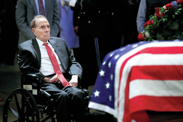 WASHINGTON — Soldiers, citizens in wheelchairs and long lines of others on foot wound through the hushed Capitol Rotunda on Tuesday to view George H.W. Bush’s casket and remember a president whose legacy included World War military service and a landmark law affirming the rights of the disabled. Bob Dole, a compatriot in war, peace and political struggle, steadied himself out of his wheelchair and saluted his old friend and one-time rival.