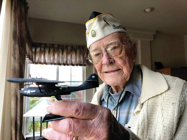 He keeps about a half dozen medals, including his Purple Heart. On his dresser is a photo of himself as a pilot in 1943. He also keeps one of his wife, who died 10 years ago.