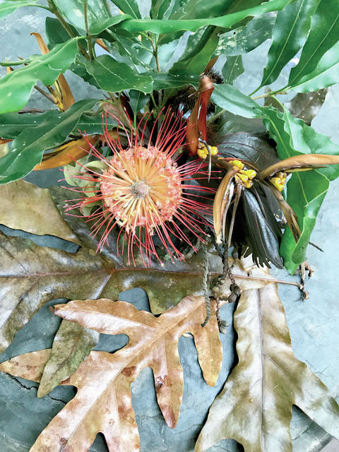 Courtesy of VOLTAIRE MOISE The macadamia family includes more than a thousand species, including silky oak, protea and stenocarpus, or Australian pinwheel tree. Leaves and flowers often are used in holiday decoration.