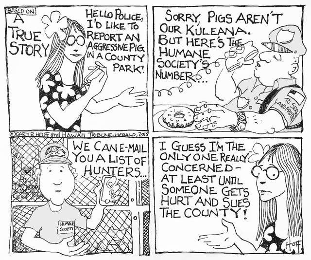The Big Island as seen by Hawaii Tribune-Herald cartoonist Gary Hoff.