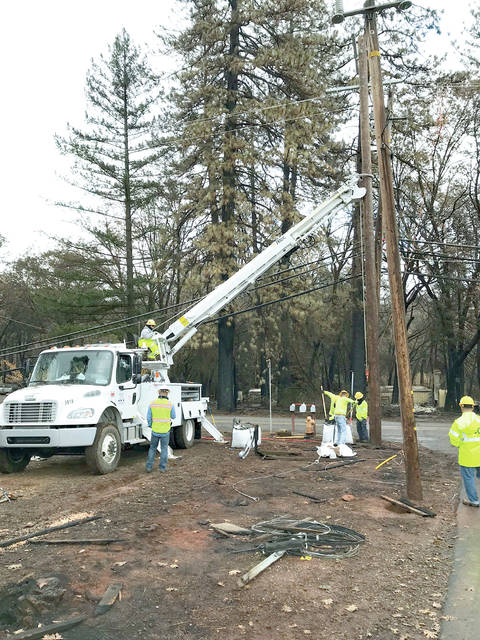 Courtesy photo Hawaii Electric Light Co. employees are helping restore infrastructure in Paradise, Calif., which was leveled by the Camp Fire in November.