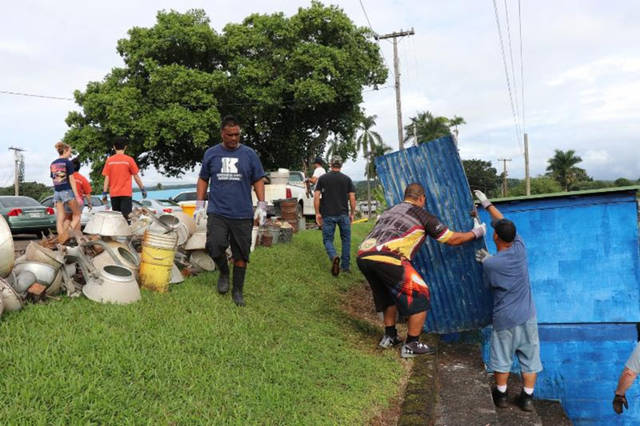 Mahalo to HELCO employees Tad Araki, Chris Chun-Hoon, Peter Grace, Mike Kameoka, Kerry Kanakaole, Owen Kaneshiro, Garner Kelii, Joshua Lau, Bryan Lum, Dane Souza, Kyle Sugi, Jason Tanaka and Kevin Waltjen, who turned out in force to remove the deteriorating poles and equipment to make the fields safe for the organization’s keiki.