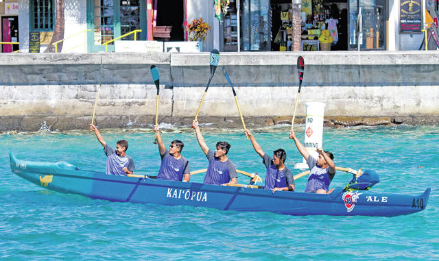 KAILUA-KONA — It was a day of full hearts and heavy strokes for the Kealakehe paddling team as the Waveriders honored former coach Bo Campos during Saturday’s BIIF regatta at Kailua Pier.