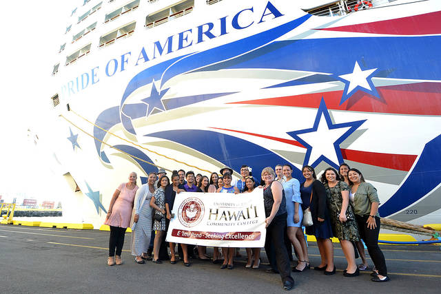 Norwegian Cruise Line’s Pride of America cruise ship recently served as a floating classroom for 30 Hawaii Community College students who are enrolled in the college’s hospitality and tourism (HOST) program.