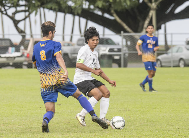Perez didn’t back down against Hilo, but in some cases his coach admitted his emotions got the best of him on fouls against Hilo’s Riley Patterson. After hitting the post on a penalty kick, Patterson buried a free kick from just beyond the penalty box. Kamani Provencal provides a big body at goalkeeper, but he didn’t have a chance to save Patterson’s blast.